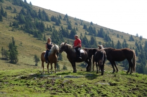Wir sind eine fünfköpfige Familie (Opa, mein Mann Günter, ich und unsere Töchter Amira, geb. 2016 und Ophelia, geb 2019) und unser Hof liegt abgelegen auf 1332m Seehöhe. Wir leben von der Forstwirtschaft, Bio Mutterkuhhaltung (19 Mutterkühe) und Norikerzucht (12 Noriker, 2xHaflinger). Wir versuchen uns mit Gemüse aus dem Garten und Glashaus, Eier von den eigenen Hühnern und Fleisch von den eigenen Tieren (Schafe, Schweine, Rinder, Hochwild) und Fische aus den eigenen Teichen selbst zu versorgen. Mein Mann ist Hufschmied. Im Sommer bewirtschaften wir zwei Almen mit Rindviechern und Pferden. Für Reiter besteht auch die Möglichkeit mit unseren Pferden zu reiten.