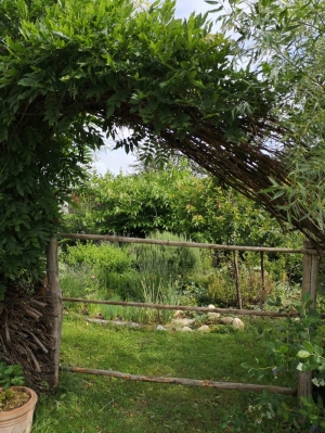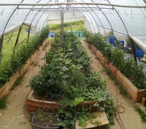 Wir bauen auf ca. 200m² verschiedenes Gemüse, Kräuter und Blumen an, das wir hauptsächlich zum Eigenverbrauch nutzen. In unserem 15m langen und 4m breiten Folientunnel wachsen viele verschiedene Tomaten, Paprika, Melanzani, Chili und Gurken. Wir achten auf eine schonende Bodenbearbeitung per Hand, arbeiten mit natürlichem Dünger und setzen bei Schädlingsbefall Nützlinge ein. Der Überschuss, vor allem bei den Tomaten, wird vor Ort an Leute in unserer Gemeinde verkauft. Aus den Chilis stellen wir einen feurigen "Sweet Chili Dip" her, der ebenfalls verkauft wird. Auf unserem Grundstück verteilt wachsen unzählige, verschiedene Obstbäume und Beerensträucher, wie auch manches Unbekannteres wie Indianerbananen oder Maulbeeren. Eines unsere nächsten Projekte ist ein Hühnerstall für ca. 10 Hühner zu bauen.