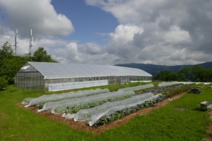 insgesamt 0,6 ha Pachtfläche, davon 1000 m² Beete im Freiland und 360m² Folientunnel