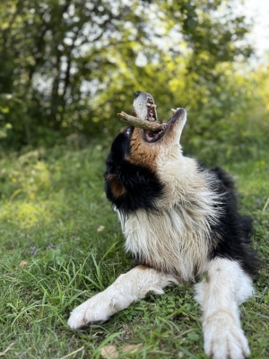 Bei uns leben 5 Pferde, 20 Schafe, 20 Hühner, 2 Hängebauchschweine, einige Katzen und ein Hofhund.