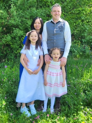Familienbetrieb: Klaus Geb. 1977, Vy Geb. 1982, Elena Geb. 2015, Sophie Geb. 2019, Hund Cian Geb.2024