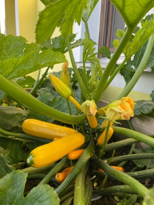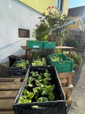 Kartoffeln, Äpfel, Zucchnini, versch. Salate, Apfelsaft, Pesto und vieles mehr.