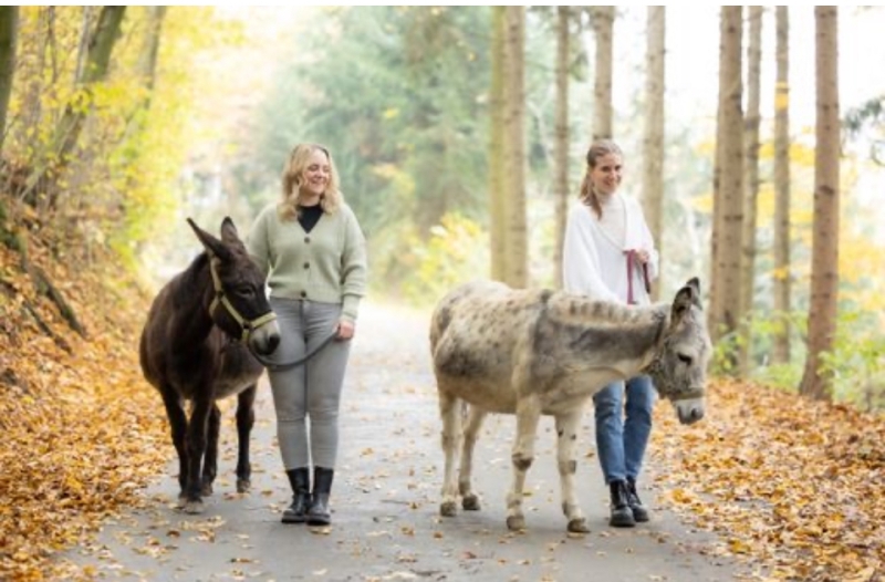 von der Mithilfe beim Füttern, Ausmisten, Melken, Käsen übers Wandern mit unseren Eseln, Pflege der Tiere und ganz viele Streicheleinheiten verteilen.