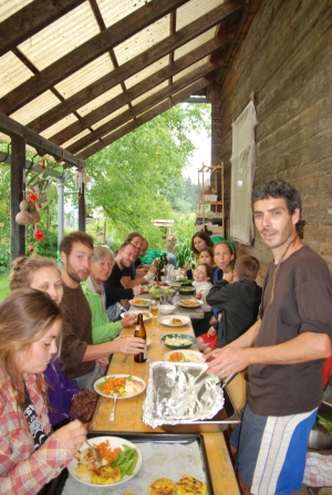 Liebe WWOOFerInnen! Unsere Eltern (Birgitt und Eduardo) sind 1984 von Südamerika ins Südburgenland umgezogen. Damals waren sie Pioniere in der biologischen Landwirtschaft und lebten vom hausgemachten Käse, Gemüsebau sowie selbst hergestellten Spielzeug , welches sie auf verschiedenen Märkten verkauften. Nach der Gründung einer Gemeinschaft mit verschieden Familien, dem Aufbau einer Schule mit den Grundsätzen der Montesoripädagogik, haben sie sich dazu entschlossen den Hof auszubauen um einen Seminarbetrieb zu gründen. Schon damals haben sie mit ihrer liebevollen Art, der gesunden Küche und dem wertvollen Platz, die Gäste beeindruckt, welche uns bis heute treu geblieben sind. 2012 haben wir, Quilla und Ananda gemeinsam mit unseren Lebensgefährten den Betrieb übernommen. Durch den biologischen Gemüseanbau versuchen wir nicht nur eine gewisse Unabhängigkeit zu erreichen, sondern erhalten dadurch auch alte Sorten und Wissen. Der Anbau verschiedenster Gemüsesorten dient in erster Linie zur Selbstversorgung und zur Verpflegung unserer Gäste. Auf unserem 10 ha großen Grundstück mit jeder Menge Grünflache halten wir 20 Mutterschafe, für die jedes Jahr 2 x Heu gemacht wird. Dadurch werden Wiesenflächen kultiviert, die wiederum einen Lebensraum für viele Pflanzen und Tierarten schaffen. Wir halten auch Hühner die uns reichlich mit Eiern beschenken aber auch Enten und Weidegänse leben mit uns. Neben der Landwirtschaft betreiben wir einen Gästebetrieb. Wir bieten diesen weitläufigen Platz, viele Räumlichkeiten und biologische Verpflegung für Veranstaltungen an. Unsere Gäste organisieren unterschiedliche Seminare und Workshops oder verbringen einfach einen entspannten Urlaub am Bauernhof. Dadurch kommen ständig neue interessante Menschen zum Hof und es besteht sogar die Möglichkeit bei dem einen oder anderen Seminar teilzunehmen. Während der Saison verarbeiten wir so viel Gemüse, Obst und Kräuter wie möglich zu veredelten Produkten: Marmeladen, Tomatensoße, geschälte, eingelegte, getrocknete Tomaten/Paprika, Melanzane/Paprikacreme, getrocknete Kräuter,.... Derzeit leben wir zu 4 am Hof (Birgitt, Ananda, Jerome und Quilla) und freuen uns über alle helfenden Hände! Unsere Zusammenarbeit ermöglicht einen Einblick in den Versuch sich unabhängig zu machen... und es bereitet uns große Freude unsere Erfahrungen mit euch zu teilen. Am Besten wäre für uns Jemand, der auch bereit wäre für einen längeren Zeitraum mit uns zu arbeiten. (Diese Entscheidung kann man vielleicht auch erst gemeinsam vor Ort treffen!) Sehr wichtig ist uns, eine beidseitige Sympathie, Wohlbefinden, Motivation und Austausch. Auch auf respektvollen Umgang mit Mensch und Natur legen wir natürlich sehr viel Wert. ...Ziel ist von unserer Arbeit gut und gewissenhaft leben zu können aber es hat noch viel mehr Bedeutung: Eine zeitgemäße, aber auch ursprüngliche und nachhaltige Lebensweise, die Zufriedenheit verursacht. Einen Ort zu erhalten wo Wissen getauscht, geteilt und weitergegeben wird. Und letztendlich eine Möglichkeit im Einklang mit der Natur zu leben und zu arbeiten. Wir würden uns sehr über Deine Unterstützung freuen!