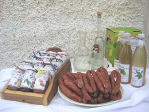 Heumilch von Schafen, Marmeladen, Kräutersirup, Bärlauchpesto, Apfelsaft und -Most, Eier, Lammfleisch, Obst- und Gemüse(Konserven)