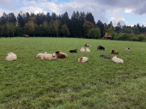 33 Ostfriesische Milchschafe, 2 Coburger Fuchsschafe, 2 Waldschafe, 1 Juraschaf, 5 Kreuzungsschafe, Hühner, Enten, 2 Schweine, 2 Pferde, 2 Esel, 8 Katzen, 1 Hund, 5 Meerschweinchen, 2 Hasen