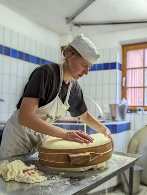 Unser Hof ist ein Bergbauernbetrieb im Salzburger Lungau, gelegen an den Südabhängen der Niederen Tauern in 1250 m Seehöhe. Wir, Klara und Peter und Klaras Eltern bewirtschaften den ca. 30 ha großen Hof biologisch. In unserer Hofkäserei wird die Milch von 10 Milchziegen und 13 Milchkühen zu ca.15 Sorten Bio-Rohmilchkäse verarbeitet, der am Markt, in unserem Geschäft und in der Gastro verkauft wird. Das Käsehandwerk praktiziert mein Vater schon seit 45 Jahren. Als Ziel unserer Arbeit streben wir eine möglichst hohe Selbstversorgung an, mit Gemüse, Obst und Kräutern aus unserem Garten, mit Brot aus unserem eigenen Getreide und mit Butter, Käse und auch Fleisch von unseren Tieren. Außerdem erhöhen wir durch unsere Milchveredelung auch die Selbstversorgung in unserer Region, indem wir hochwertigen Rohmilchkäse direkt verkaufen. Wir schätzen die bäuerliche Arbeit, das gute und gesunde Essen, Kunst und Kultur sind uns wichtig und wir sind glücklich, inmitten einer wunderschönen Berggegend zu leben.
