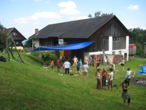 Kollektive Wohn- und Arbeitsgemeinschaft bestehend aus Erwachsenen und Kindern Farm collective consisting of adults and children