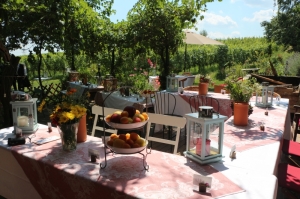 1,5 ha Weinbaufläche, davon ca. 0,2 ha Wildkräuter- und Gemüseanbau für den eigenen Gastronomiebetrieb