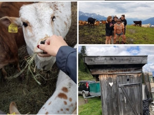 Unsere Alm liegt auf 1.750 m. Wir, Lilly, Günther, Patric und Mathias, leben hier das ganze Jahr über. Bei uns sind alle Menschen willkommen, die Lust haben, bei uns in der Natur, bei den Tieren, auf Bergen und Almen sowie in der Landwirtschaft mitzuhelfen. Im Sommer betreuen wir an die 70/80 Stück Vieh, darunter zwischen 10 eigene Sprinzen. Zur täglichen Arbeit gehört das Kühe hüten, sodass wir oft mehrere Stunden wandernd verbringen und die Tiere den Berg hinauf- oder hinuntertreiben, je nach Jahreszeit. Insgesamt verbringen wir viele Stunden draußen. Außerdem melken wir in manchen Jahren Milchkühe und verarbeiten die Milch für den Eigenverbrauch (Butter und Graukäse). Auch das Heu machen auf unseren eigenen Feldern und die Holzeinlagerung für den Winter fallen im Sommer an. Im Winter befinden sich unsere eigenen Kühe im Stall. Um dorthin zu gelangen, kann man von der Alm ins Tal bei genug Schnee rodeln oder Skidoo fahren (eine fetzen Gaudi!). Im Stall wird gemistet, gefüttert und es bleibt immer genug Zeit zum Kühe kuscheln. Wir freuen uns über WWOOFerInnen, die uns über eine längere Zeit unterstützen (>2 Wochen sind empfehlenswert) und die motiviert, freundlich und kreativ sind und gerne Eigeninitiative ergreifen.