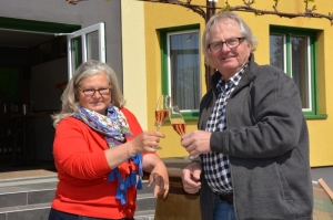 Wir, das sind mein Mann Erwin und ich, Sigrid, arbeiten gemeinsam mit unseren Kindern Sebastian und Victoria. Mein Mann hat das Handwerk gelernt, er ist stets die fachliche Kompetenz und der Zahlenmensch. Man findet ihn am ehesten im Keller. Ich darf mit meinen Erfahrungen, die ich in der Natur gemacht habe, Individualität und Kreativität einbringen, ich bin sehr spürig und erdverbunden. Die Arbeit mit der Rebe möchte ich gegen keine andere Tätigkeit auf der Welt tauschen. Unsere Kinder unterstützen uns mit ihren Talenten, so ist Sebastian meist im Weingarten zu finden, entweder auf dem Traktor oder bei der Handarbeit. Victoria managt meist von zu Hause aus, hilft aber gerne auch draußen, wenn Not am Mann ist. Das allerwichtigste im Weinbau ist für uns der gesunde Boden, nur ein lebendiger Boden kann vitale Pflanzen beherbergen, die wiederum gesunde Früchte tragen. Bodenpflege bedeutet für uns eine ganzjährige Begrünung, die Anwendung von Fladen- und Hornmistpräparat und so wenig Belastung wie möglich. Beim Pflanzenschutz gilt so wenig wie möglich und mit Sinnhaftigkeit. Ganz großen Wert haben das Hornkieselpräparat und pflanzliche Wirkstoffe. In der Reberziehung achten wir die Wesenhaftigkeit der Rebe, nämlich dass sie einfach nur, sich an einem Rahmen haltend nach oben zum Licht wachsen will, in den Wuchs und den Ertrag greifen wir nur minimal ein. Auch im Keller lassen wir der Natur ihren Lauf. Spontan und ohne Hilfsmittel vergärt der süße Most zum kräftigen Wein. Unsere Arbeit ist das Beobachten und das Schaffen der idealen Bedingungen zur Reife, wie die Wahl des Fasses und die Länge der Lagerung. So ist der Lauf des Arbeitsjahres, grundsätzlich kann man aber auch sagen, dass wir, vom Auspflanzen angefangen, bis zum Verkauf des fertigen Weines, also den ganzen Lebenszyklus eines Weines, begleiten, und einigen davon trinken wir mit viel Freude auch selber!