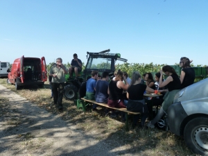 WWOOFerInnen machen die HANDarbeit, die wir machen, mit uns. Der wichtigste Einsatz ist sicherlich die Lese, viele Leute sind gleichzeitig notwendig, um möglichst schnell möglichst gut selektionierte Trauben gesund und unverletzt nach Hause zu bringen. Aber auch in der restlichen Zeit der Vegetationsperiode gibt es Betätigung: "Stock putzen", "Einstricken",.... am Grün ist immer etwas zu tun. Auch im Keller ist eine helfende Hand immer wieder willkommen, beim Füllen, Abziehen, Abpacken,... Immerhin machen wir (fast) alles selber, vom Pflanzen bis zum Verkaufen.