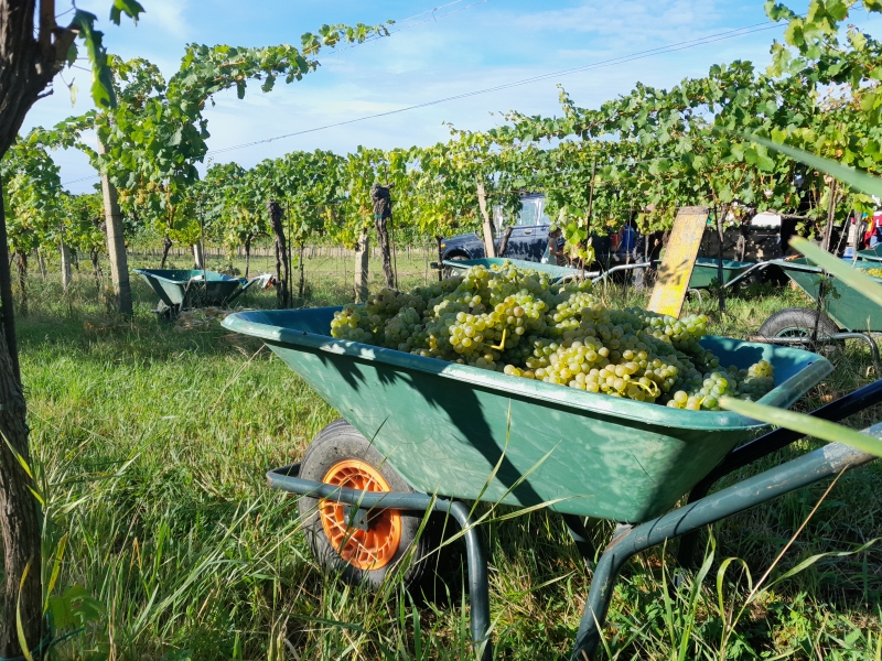 Wir betreiben ganzheitlichen Weinbau in einer Gegend mit einzigartigen klimatischen Verhältnissen. Wir, das sind Sabrina & Hans Peter und unsere Kinder Konstantin und Elise sind auch mit dabei. Unsere Rieden erstrecken sich vom trockenen, kalkigen Boden des Leithagebirges über den Rand der Parndorfer Platte durch Schotter und Lehm, bis hin zur humusreichen Erde am Nordufer des Neusiedlersees. Wir betreuen und unterstützen unsere Weingärten durch sehr viel Handarbeit und betreiben seit 2006 kontrolliert biologischen Weinbau. Nach der Übernahme des elterlichen Betriebes 2011 wurde auch demeter zertifiziert und seither bewirtschaften wir die Weingärten nach biodynamischen Richtlinien. Wirklich wichtig ist uns dass unser Betrieb ein ökologischer Kreislauf ist. So wachsen etliche Wild- und Heilkräuter in unseren Reihen, um deren Nutzen und Guttun wir wohl Bescheid wissen. Mit unserer Art der Bewirtschaftung bieten wir zudem vielen Tieren einen Zuhause und nehmen uns auch gerne die Zeit diese Artenvielfalt zu bemerken und zu bewundern und das alles in Echtzeit. Im Weingarten wie auch bei der Kellerarbeit achten wir darauf manuelle Arbeiten den maschinellen Arbeiten überzuordnen. Die Ernte und Selektion der Trauben findet rein von Hand statt und hier benötigen wir viele fleißige Hände. Wir produzieren Naturweine, die spontan vergären. Ausgebaut ohne Einsatz von Behandlungsmittel, ungeschwefelt, unfiltriert, weitgehend ohne Einsatz von Maschinen und dennoch gibt es auch einiges an Kellerarbeit zu erledigen. Zu guter Letzt wollen wir aber auch den lieben Großvater erwähnen, der eine große Bereicherung für unseren Betrieb ist und uns gerne noch manch notwendige Traktorarbeiten erledigt. Dankeschön!