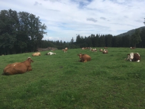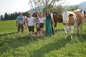 Wir, Robert und Susanne, sind die Eltern von 4 Kindern und leben zusammen auf unserem Biohof mit unseren Kühen, Schweinen, Schafen, Hühnern, Ponys, Katzen und unserer Hündin Ella. Während Robert sich hauptsächlich um die Außenwirtschaft von ca. 50 ha (der Großteil Grünland und Weidefläche, aber auch ein paar Hektar Acker) und die Melkarbeit kümmert, verarbeitet Susanne die Milch weiter zu: Joghurt, Topfen und Sauerrahm. Diese wertvollen Lebensmittel werden dann ab Hof und am Freitag und Samstag am Markt verkauft.
