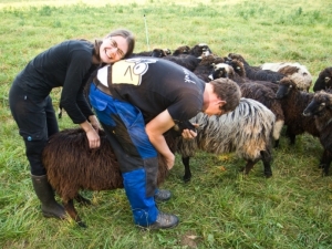 Im Dorf Bildein nahe der ungarischen Grenze in der „Südburgenländischen Weinidylle“ züchten wir Krainer Steinschafe, eine alte, traditionelle Schafrasse. Wir haben rund 130 Muttertiere plus Nachwuchs und Widdern, das sind insgesamt rund 350 Schafe. Wir beweiden in mehreren Zuchtgruppen naturschutzfachlich wertvolle Wiesen in den Weinbergen mit alten Streuobstbeständen, nur von Dezember bis März kommen die Tiere in den Stall. Unsere tägliche Arbeit besteht vor allem in der Betreuung der Schafe auf den Weiden. Fast jeden Tag steht bei einer Herde ein Weidewechsel an, dabei wandern wir mit den Schafen und unseren ausgebildeten Hütehunden durch die Landschaft. Helfen und lernen könnt ihr außerdem den Umgang mit Zäunen (mobile Elektrozäune)und die Weidepflege mit Motorsense und -mäher, sowie das Schafescheren. Wer Interesse hat, kann beim Schlachten, Zerlegen und Vermarkten des Lammfleischs und der Wurstprodukte helfen. Zusätzlich halten wir ein paar Enten und Hühner, pflegen einen großen Gemüsegarten und produzieren Apfelsaft, Marmeladen, Tee und Sirupe. Für die Eigenversorgung melken wir eine Kuh und ein paar Schafe und stellen fast alle Milchprodukte selbst her. Zum Haushalt gehören unsere beiden Kinder Ludwig (2010) und Friederike (2012) sowie unser Mitarbeiter Florian. Als WWOOFerIn kannst du in allen Bereichen im Betrieb, in Haus und Garten mithelfen und lernen und dich zwischendurch im Schwimmteich oder in der Sauna erholen. Die Umgebung lädt zu Radtouren, Spaziergängen und Ausflügen nach Ungarn ein. Abends kannst du die guten Weine der Region in einer der bäuerlichen Buschenschänken verkosten. Unterbringung im eigenen Zimmer. Für mehr Infos schau doch bitte auch auf unsere Homepage! Unsere Ernährung sowie unser gesamter Konsum sind nahezu 100% BIO. Wir heißen selbstverständlich auch Vegetarier gerne willkommen (haben beide selbst vegetarisch gelebt), würden uns jedoch freuen, wenn WwooferInnen unsere Produkte schätzen und genießen könnten. Bäuerliche Tierhaltung ist nun mal kein Streichelzoo!
