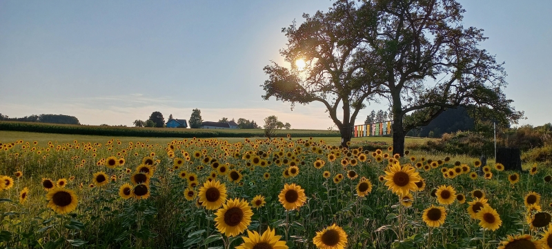 Wir sind ein 4 Generationen Haushalt mit kleiner sehr diverser Landwirtschaft und Tischlerei. Neben allerlei Gemüse und Obst, die wir zu hausgemachten Delikatessen weiterverarbeiten, haben wir auch 12 Milchschafe und 4 Schweine. Auf unseren Ackerflächen bauen wir neben Futtermittel für unsere Tiere auch Dinkel und Roggen für eigenes Mehl und Sonnenblumen für Öl an.