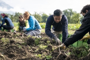 Unser Hof wird von einem sozialen Verein geführt. Wir beschäftigen Frauen und Männer, die eine Abhängigkeitserkrankung hatten und nun abstinent leben wollen. Dazu helfen uns auch einige Ehrenamtliche am Hof. Wir bauen biologisches Gemüse, Kräuter, Getreide und Obst auf einer Fläche von ca. 4 Hektar an, der Rest ist Grünfläche und wird gemäht. Ich leite den Hof und werde unterstützt von fünf bis sechs Klientinnen und Klienten, die sich bereits gut auskennen und einigen Ehrenamtlichen. Wir haben die Landwirtschaft im Jahr 2021 übernommen und sind dabei, alles aufzubauen. Wir finanzieren uns über das Modell einer Solidarischen Landwirtschaft, was bedeutet, dass über 150 Haushalte mit fixen monatlichen Beiträgen unsere Kosten übernehmen und dafür einmal pro Woche ihren Anteil an der Ernte abholen können.