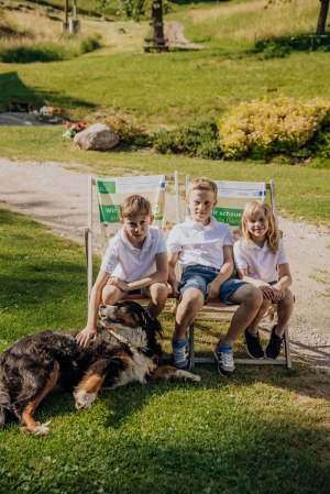 Bauernfamilie Weger Gerlinde und Christian mit Niklas (geb. 2011), Jonathan (geb. 2013) und Helena (geb. 2016)