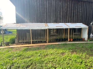 Wir haben im September 2021 unseren Hof bezogen und betreiben jetzt Obst- und Gemüseanbau. Seit 2 Jahre haben wir ein 10 x 18 m Gewächshaus sowie ein Kühlhaus und auch eine Wirtschaftsküche. Wir haben Katzen, Hasen, Enten, Hühner und einen Gockel. Wir haben einen kleinen Traktor, arbeiten aber sehr viel per Hand.