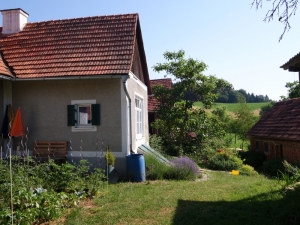 Ich haben 2011 die Landwirtschaft gekauft. Seither habe ich viele Bäume, Obstbäume und Sträucher, Rosen usw. gepflanzt, Beete und ein Biotop angelegt. Der Hof ist 5km vom nächsten Ort mit Einkaufsmöglichkeit entfernt. Er liegt allein in ruhiger Süd-Ost Hanglage in wunderschöner Hügellandschaft mit Weinbauklima. Das Renovieren der Gebäude wird noch eine Zeitlang weitergehen, aber das Wohnhaus und ein umgebauter Kuhstall im Wirtschaftsgebäude sind schon sehr gut zu bewohnen. Meine Ziele sind unter anderem, hier einen kleinen Seminarbetrieb aufzubauen, sowie ein oder zwei Wohnplätze zu schaffen.
