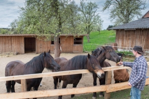 Stallarbeiten bei den Pferden, Pflege der Pferde und der anderen Tiere am Hof, Instandhaltung und Arbeiten rund um den Hof.