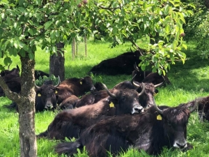 **********************************************************************************für 2025 können wir leider keine WWOOFerinnen aufnehmen **************************************************************************** Unser Hof befindet sich am Hang mit wunderbarer Aussicht auf den schönen Bodensee. Wir halten Yaks (asiatische Hochlandrinder), die wir vor allem zur Fleischproduktion nutzen, aber auch Zuchttiere verkaufen wir. Eine kleine Ziegenherde unterstützt uns in der Weidepflege. 2 Vogelstrauße tragen zur Vielfalt des Hofes bei und liefern große, leckere Eier. Seit kurzem haben wir außerdem eigene Bienen am Hof. Eine artgerechte Haltung mit viel Auslauf im Freien liegt uns bei allen Tieren besonders am Herzen. Obst von unserer Streuobstwiese (Äpfel, Zwetschgen, Trauben, Birnen) verarbeiten wir zu Säften und Dörrobst. Saisonal runden Tees und Kräutersalz das Sortiment ab. Gemüse bauen wir hauptsächlich für den Eigenbedarf an. Auf Anfrage bieten wir gerne auch Hofführungen an.